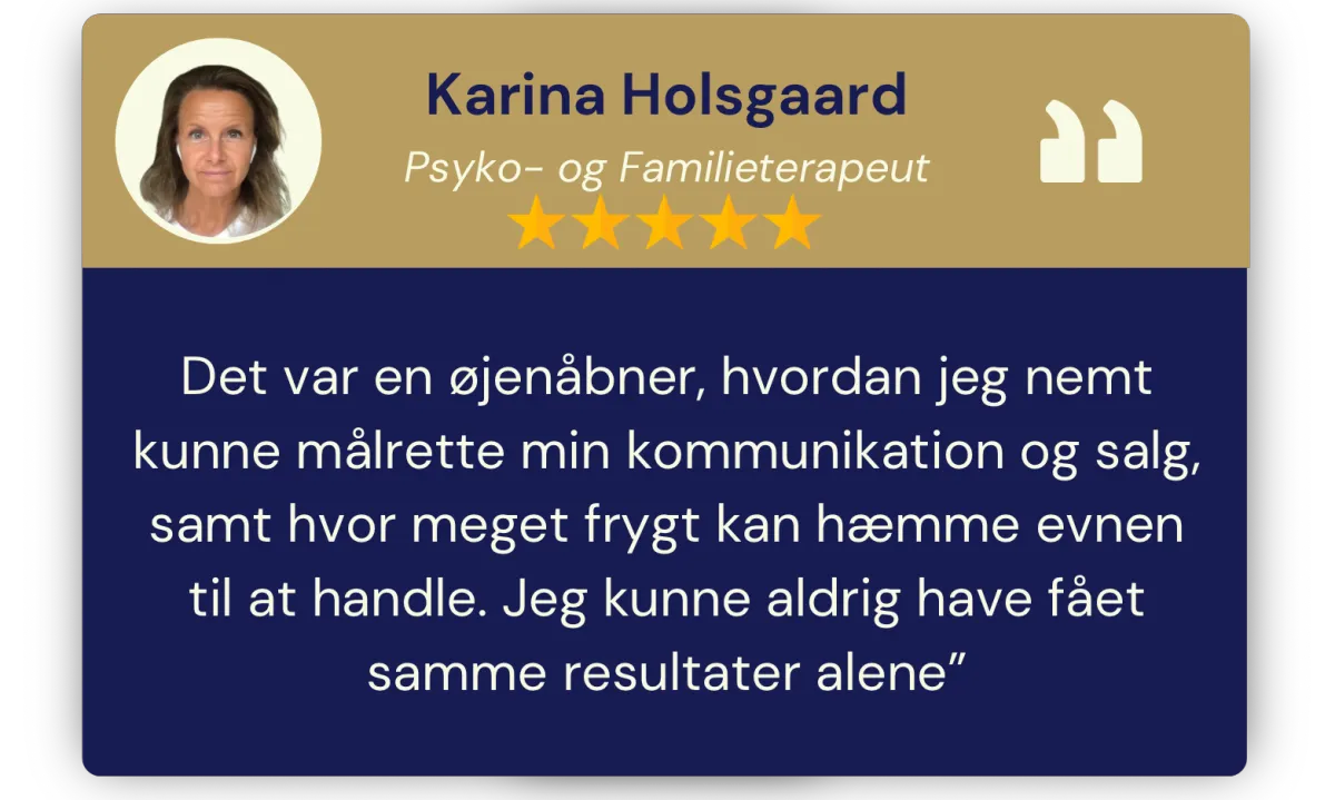 Du har en etableret forretning, hvor du allerede har tjent minimum 500.000 kr./år, og er klar til at gøre din månedsomsætning 6-cifret.